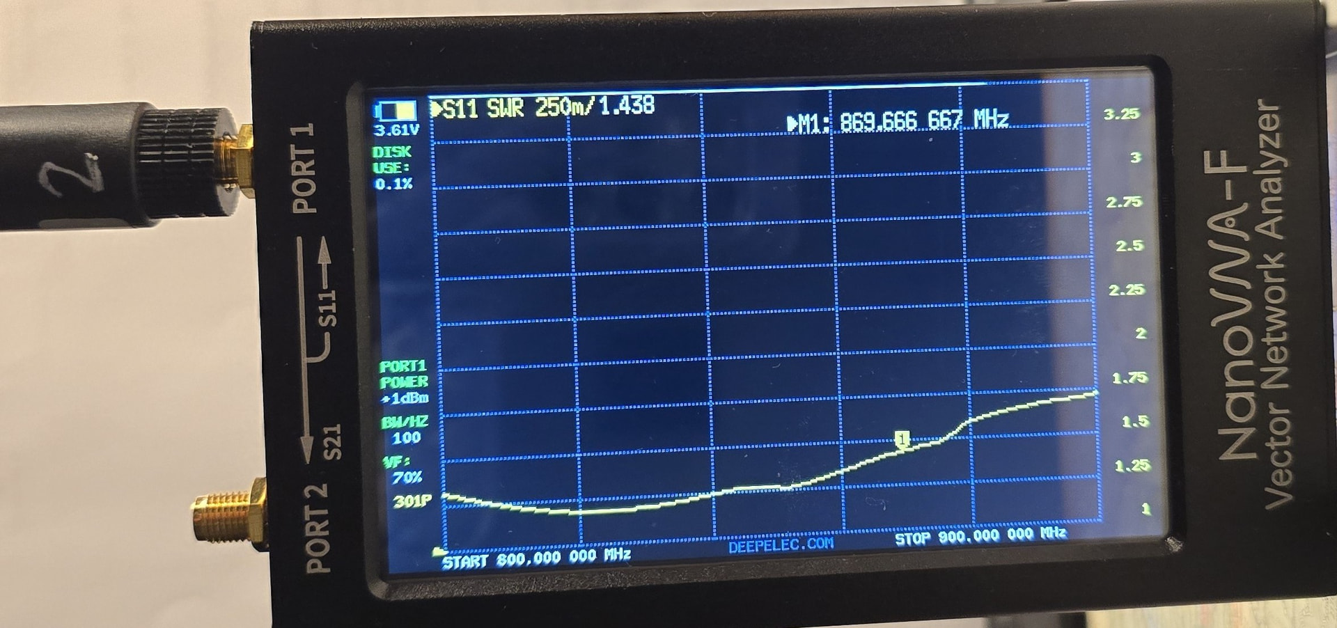 Wieweit die Messungen korrekt und belastbar sind, I don’t know yet. Wenn ich mir den VNA anschaue dann frage ich mich insbesondere ob die gemessenen SWR in der Anwendung z.B. Antennen auf SMA-Buche in Kunstoffgehäuse, drin ein RAK Transceiver etc. übertragbar sind. Der VNA hat z.B. oben so eine Alu-Blende, und auch eine spezifisches Gegenwicht in Form der Elektronik.