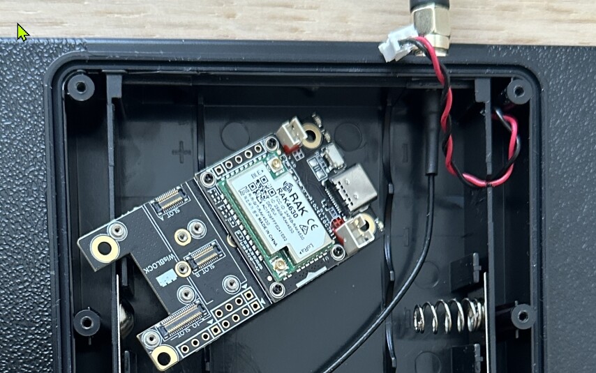 Als optionale Massnahme habe ich noch die externen Bluetooth Antennen entfernt das BT für MeshCore ja eh nicht relevant ist. Den externen Antennen Stecker habe ich mit einer Abdeckkappe versehen. Als Ersatz habe ich einen kompakte PCB BT-Antenne eingebaut. Diese passt in den Schlitz auf der gegenüberliegenden Seite.