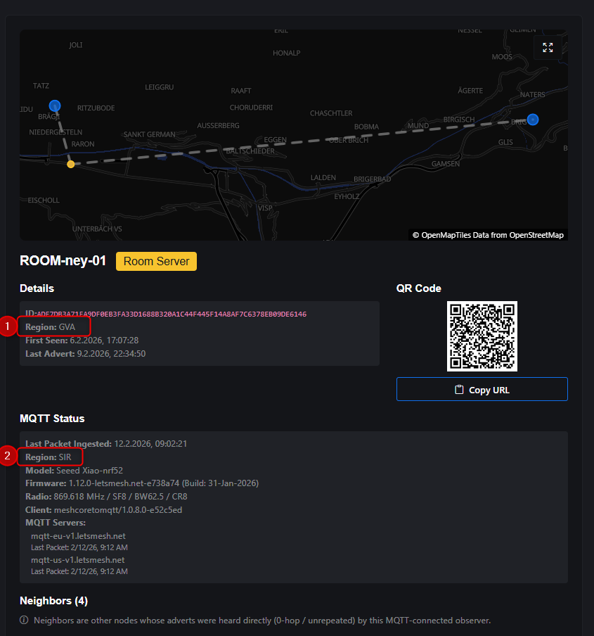 Beim MQTT Status (2) sehe ich nun den richtigen IATA aber bei Details (1) ist immer noch GVA eingetragen, so wie bei allen Repeatern im Wallis. Muss ich da sonst noch was machen? Adverts habe ich hin und her geschickt, daran sollte es eigentlich nicht liegen…?