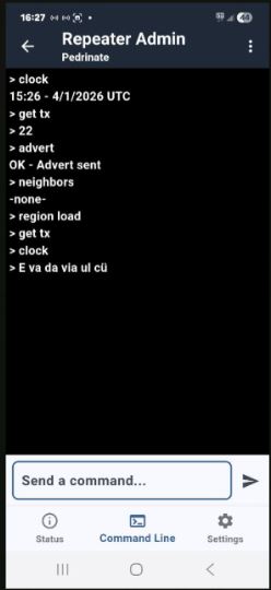 Aktivieren einer Region mit diesem Befehl im Terminal direkt in der App wenn man auf einen Repeater eingeloggt ist, in diesem Beispiel die Region #CH.