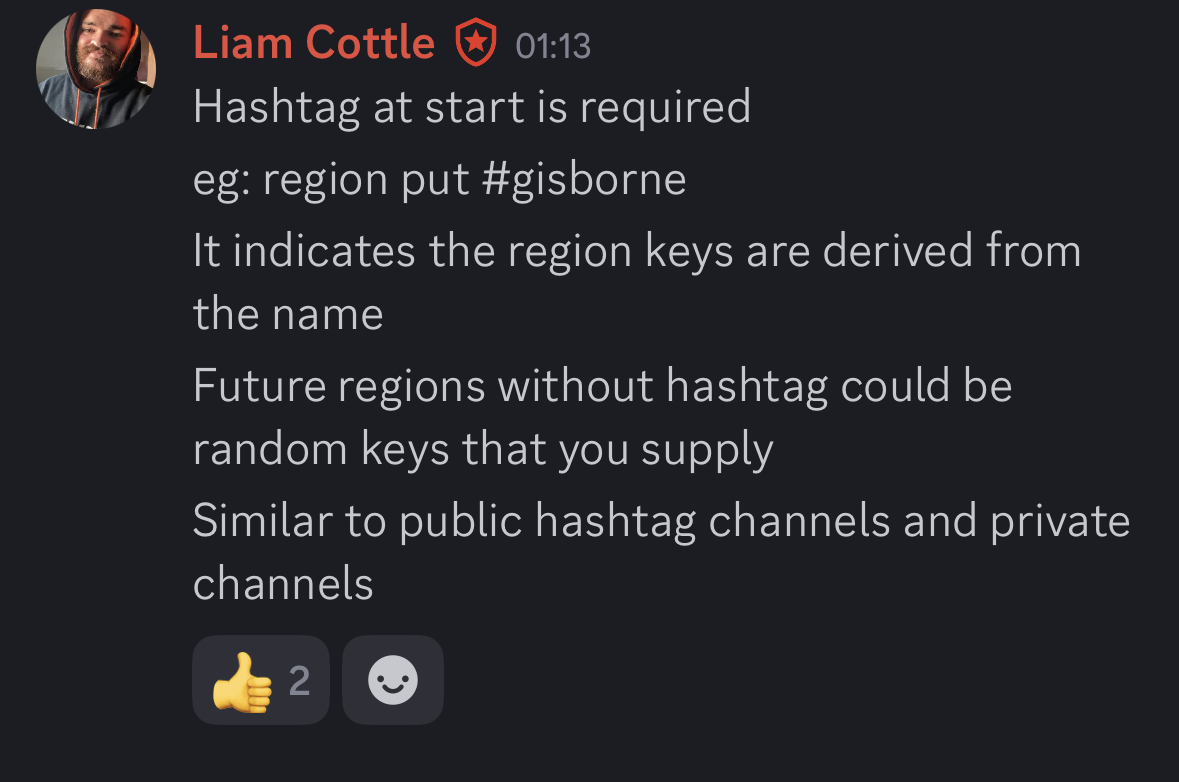 Das Feature ist nicht fertig, es gibt in der MeshCore App zum Beispiel noch keine einfache Art die Region zu setzen beim senden von Nachrichten.