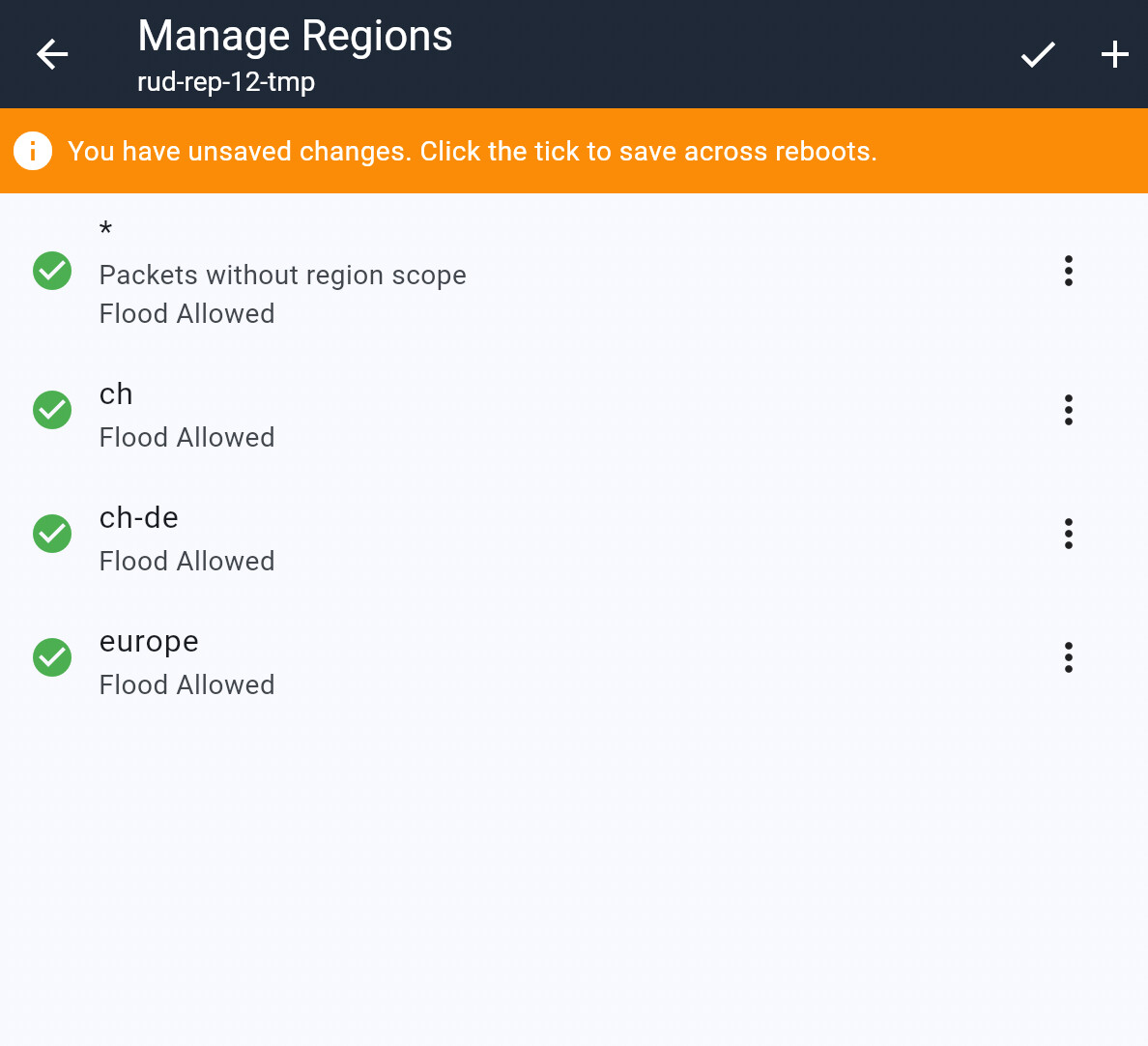 Es wird schwierig, diese Region-Einstellungen zu kommunizieren, durchzusetzen und zu überwachen. Ein Automatismus über die App (Preset wie bei den Funkparametern oder Kopieren / Übernahme von benachbarten Repeatern) oder Firmware (fix vordefinierte Regions) würde das Ganze vereinfachen.