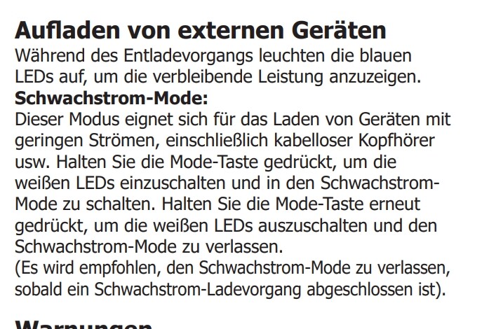 Toll wäre es noch, wenn der Modus nach Entfernen des zu ladenden Geräts automatisch wieder ausgeschaltet würde.