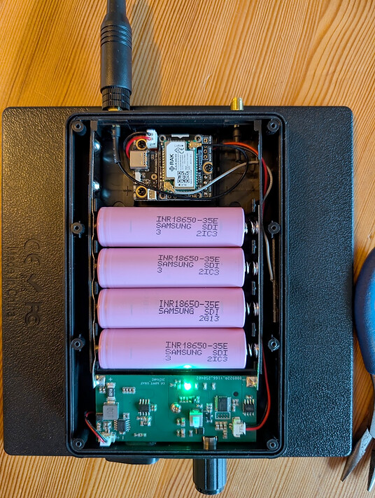 Ich arbeite seit längerem direkt mit dem Lieferanten zusammen. Auf meinen Wunsch hin wurde ein PCB entwickelt welches nicht geregelte 5 Volt ausgiebt sondern die Batterie-Spannung, so weiss das LoRa-Modul dann auch auch den tatsächlichen Ladestand. Zusätzlich hat diese spezielle PCB auch MPPT, was nicht der Fall ist wenn man das zum Beispiel über Aliexpress bestellt.