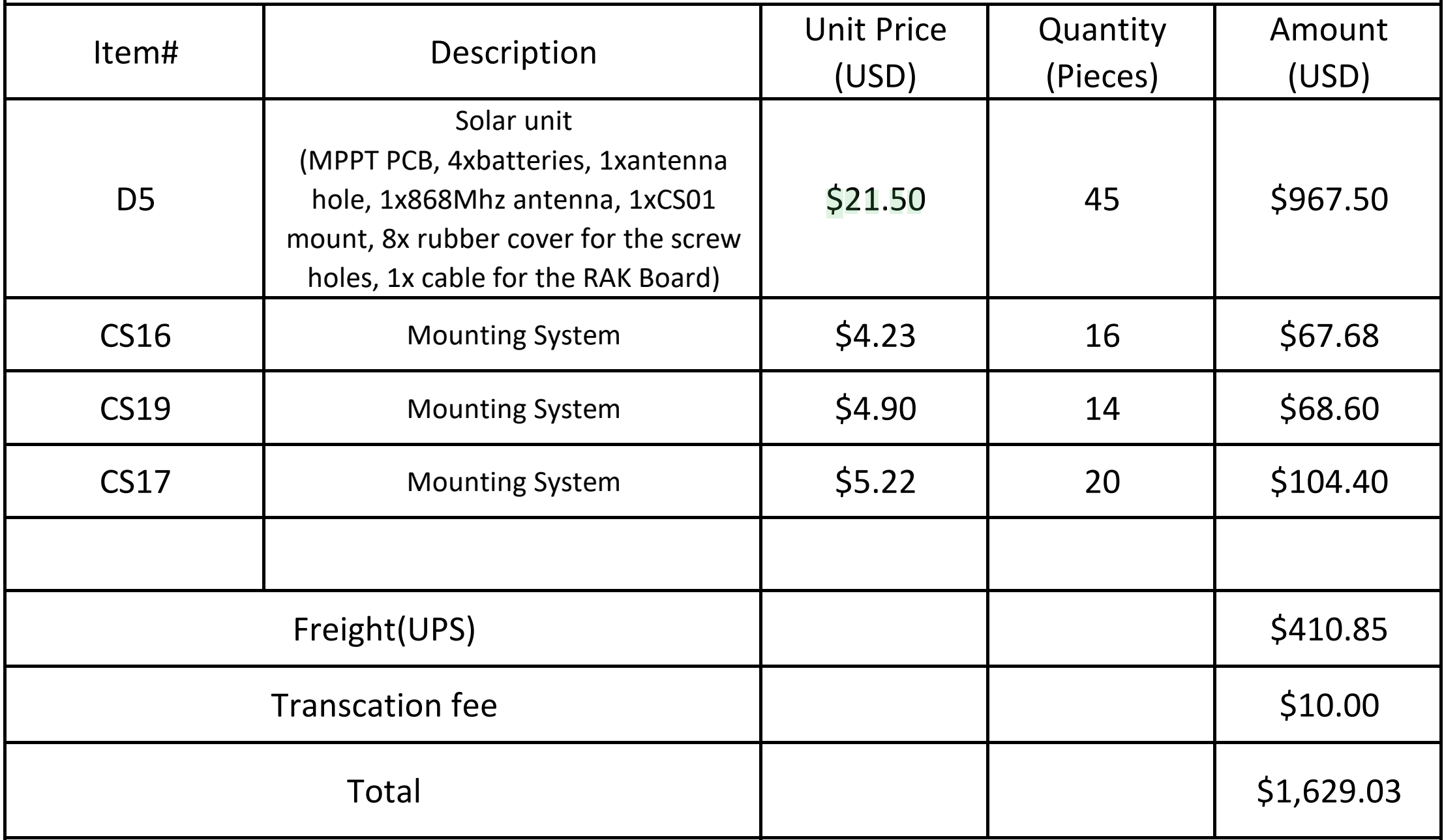 Selbstverständlich werde ich am Schluss wieder alle Kosten offen legen. Im Moments stehen wir pro Repeater inkl. Versand bei USD 30.63. Da kommt dann aber noch MWST und DHL-Abwicklunsgebühren, wir sind aber auf Kurzs das wieder unter 35.- hin zu bekommen.