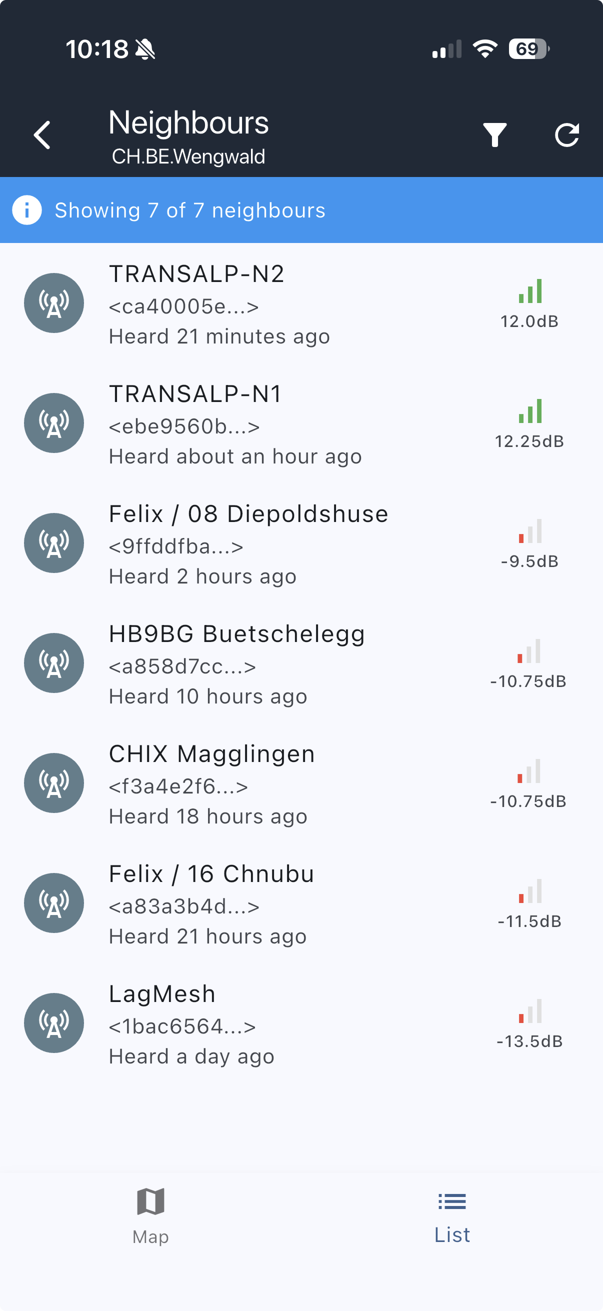 Meine Repeater behauptet er sehe folgend Repeater direkt: